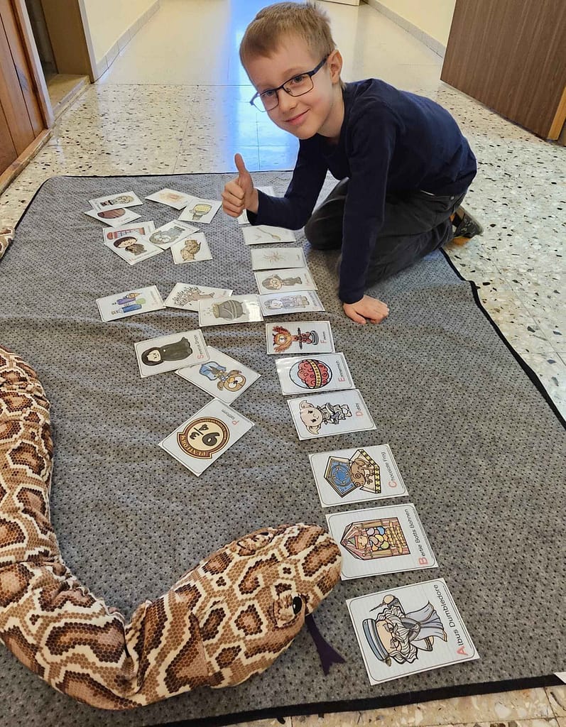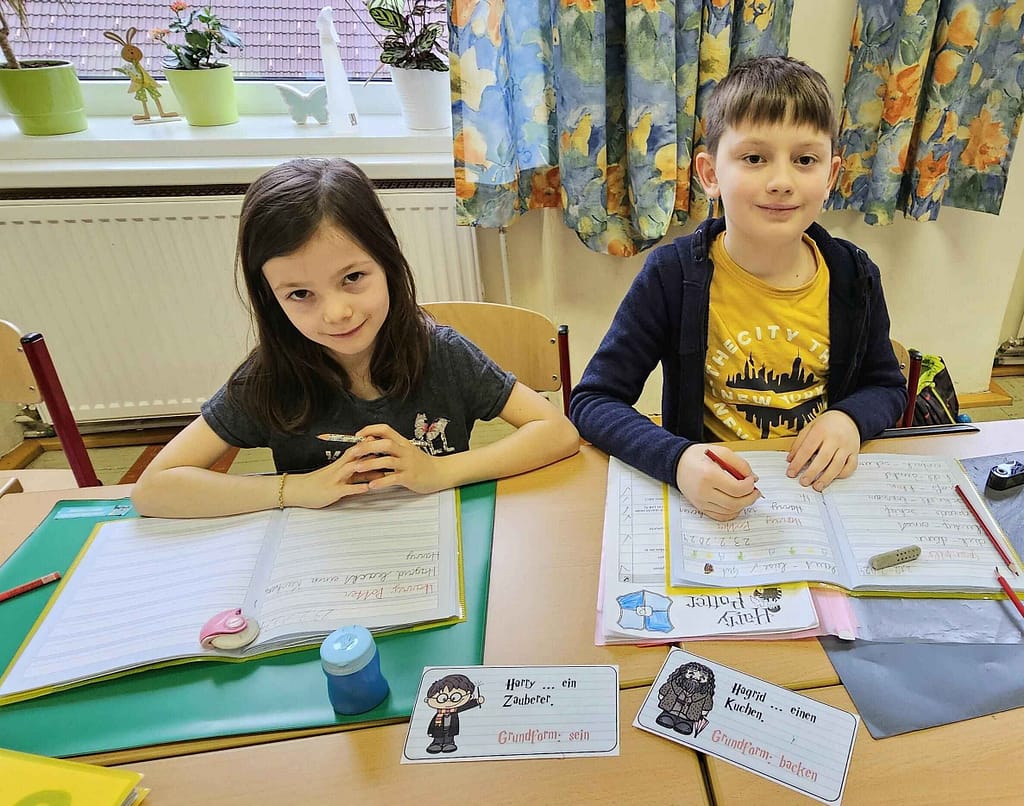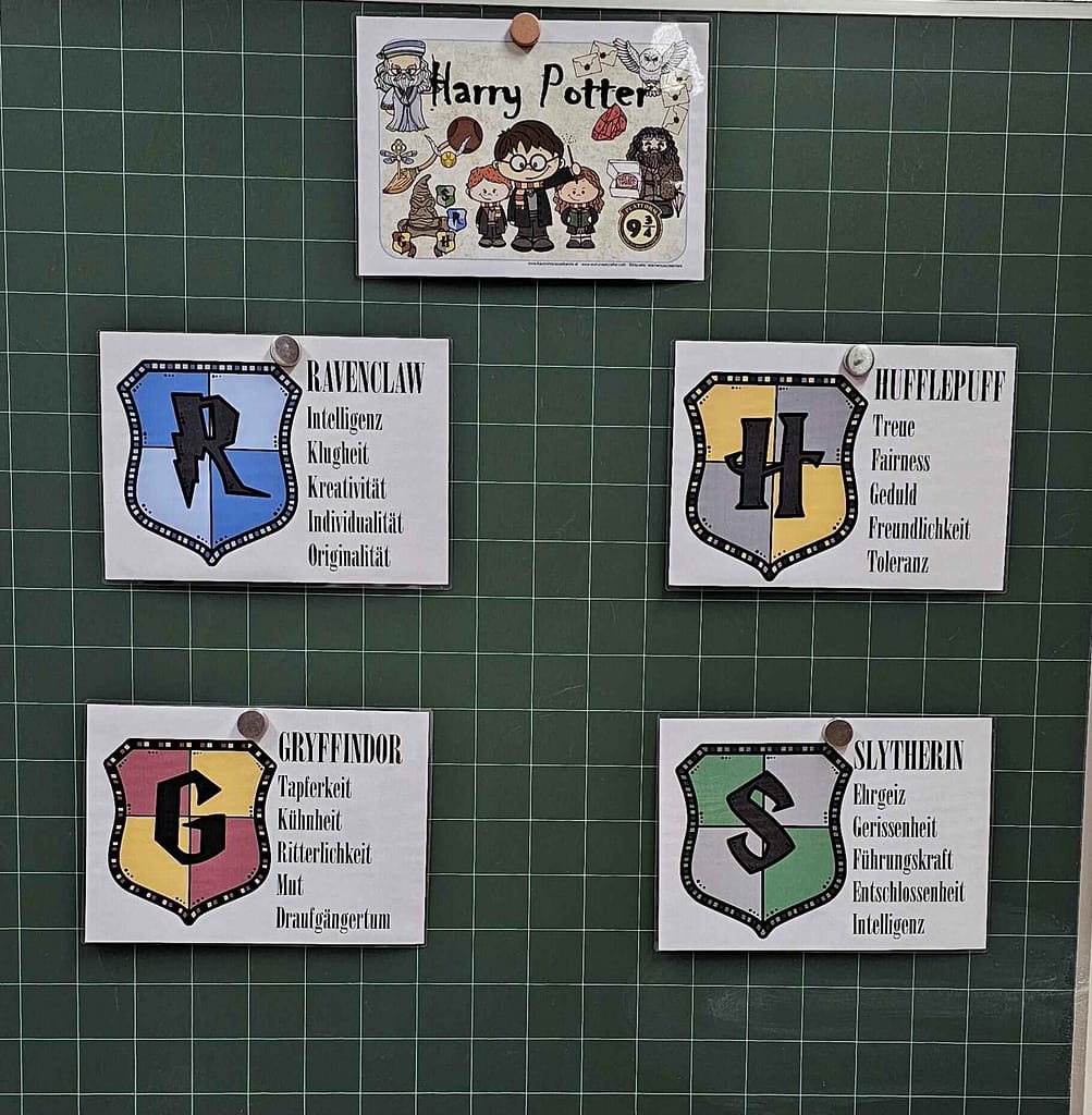 Heute ging es in der 2. Klasse magisch zu, denn beim heutigen Tagesplan drehte sich alles um die zauberhafte Welt von „Harry Potter“. Zuerst durften sich die Kinder selbst einem der vier Hogwartshäuser zuweisen, je nachdem, welche Eigenschaften sich die Kinder selbst zuschrieben. Danach ging es auch schon mit der Tagesplanarbeit los. Wir lösten Harry Potter Malaufgaben, schrieben kurze Sätze über die Figuren, lernten und erfanden Zaubersprüche und spielten Domino und Memory. Alle „Zauberlehrlinge“ waren äußerst eifrig und hatten großen Spaß am heutigen Schultag!